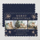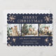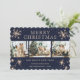 Elegant blue photo collage holiday card featuring snowflakes and stars. Easily personalize this cute holiday card with your photos and text.