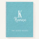 Simple unique modern aqua sea glass blue teal faux glitter sparkling monogrammed and name personalized recipe cookbook notebook.