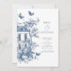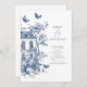 Elegant Blue Toile De Jouy QR Code Wedding Invitation