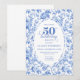 Elegant Blue Toile Rose Floral 50th Birthday Invit Invitation