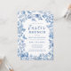 Elegant Blue Toile Whimsical Floral Easter Brunch Invitation