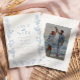 The matter paper is our sample of choice -- it's a reasonably priced, good quality, nice feeling paper stock. We were a little concerned the muted rustic blues might not reproduce all that well (usually by light colored samples), but they're just gorgeous! The white lettering is perfect in combination with the blue background, and the typography is all easy to read.