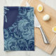 Elegant Blue Vintage Damask Pattern Kitchen Towel