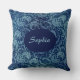 Elegant Blue Vintage Damask Pattern Throw Pillow