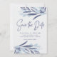 Elegant Blue Watercolor Foliage Wedding Save The Date