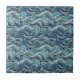 Elegant Blue Wave Pattern with Gold Accents Ceramic Tile