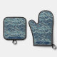 Elegant Blue Wave Pattern with Gold Accents Oven Mitt & Pot Holder Set