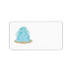 An elegant blue tiered wedding cake design, adorned with delicate blue ribbons and decorations. Personalize this label with your specific details as needed.