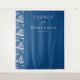 This is a minimalist style image featuring an elegant wedding invitation with a deep blue background. The left side showcases a charming white floral pattern, adding a touch of sophistication and romance. The names "Lauren and Benjamin" are prominently displayed in a classic serif font, followed by the date "May 23, 2026," all set against the serene blue backdrop. It exudes a sense of timeless elegance and refinement, perfect for setting the tone for a sophisticated celebration.