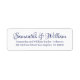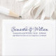 Elegant blue and white custom script calligraphy names chic wedding return address labels.