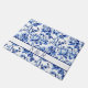 A luxury mat featuring an elegant blue and white floral toile design. This makes a perfect gift for a newlywed couple.