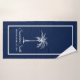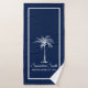Add your own special touch to this simply elegant design featuring your family name or phrase and established date in white text and palm tree framed in a white border over a navy blue background.