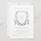Elegant Blue Wildflower Monogram Crest Baptism Invitation