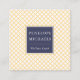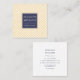 Simple and elegant yellow and white geometric trellis pattern with chic blue square business card.