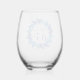 Elegant Blue Wreath 65th Birthday Party Stemless Wine Glass