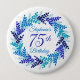 Elegant Blue Wreath 75th Birthday Button Pin