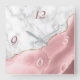 Elegant modern white marble and blush pink agate trimmed with faux gold glitter combine in this luxurious square wall clock. The numbers 3 and 6 appear in light blush on the agate background, while the numbers 9 and 12 appear in dark dusty rose on the white marble.