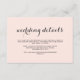 Elegant minimalist blush and gray wedding guest details card.