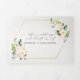An elegant and delicate design featuring watercolor hand-painted blush and white flowers adorned with eucalyptus and other greenery on each panel. This all in one sustainable invitation would save you money, no need to include additional enclosure cards or RSVP envelopes, your guests will cut the last panel and mail it back to you as a postcard.