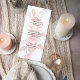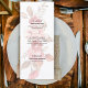 Set a refined tone at your reception with this elegant blush floral wedding menu card. Featuring soft watercolor blooms in delicate shades of blush, peach, and ivory, this design creates a romantic, airy feel that complements both modern and classic wedding styles. The clean typography balances beautifully with the floral artwork, making each course easy to read while maintaining a graceful, polished look.