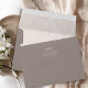 Elegant blush wedding envelope design featuring soft floral accents and a refined return address back flap in classic taupe tones. Created to coordinate seamlessly with a matching stationery suite, this timeless detail brings a polished, cohesive look to your invitations, RSVP cards, and enclosures. Perfect for elevating your wedding mailing supplies, this design blends romance and sophistication for couples who love a classic, elegant presentation.