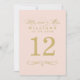 NOTE: Each table number card must be customized and individually added to the shopping cart. Elegant card includes a flourished Mr. and Mrs. monogram with champagne gold calligraphy and scroll design accents. Two sided design. To change the background color (blush pink), go to Customize / Edit / Background.