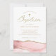 Elegant Blush Pink Agate with Gold Cross | Baptism Invitation