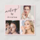 Elegant Blush Pink Black Script 3 Photo Makeup Square Business Card
