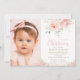 Elegant Blush Pink Floral Gold Christening Photo Invitation