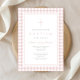 Elegant Blush Pink Gingham Girl Baptism Invitation