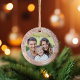 This beautiful holiday ornament features blush pink brushed metal and glitter background and personalized with your favorite photo and family name.