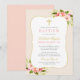 Elegant Blush Pink Gold Floral Girl Baptism Invitation