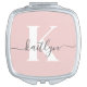 This simple, elegant blush pink compact mirror with your first name in a trendy script font in gray and your first initial in a modern cap font in white is perfect for you. It's stylish and trendy and yet very classic. It will come in so handy for a quick makeup and hair check when out and about.
