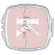 Elegant Blush Pink Gray Script Monogram Compact Mirror