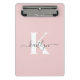Elegant Blush Pink Gray Script Monogram Mini Clipboard