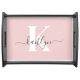 Elegant Blush Pink Gray Script Monogram Serving Tray