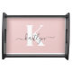 Elegant Blush Pink Gray Script Monogram Serving Tray