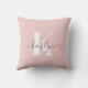 Elegant Blush Pink Gray Script Monogram Throw Pillow