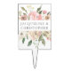 Elegant personalized floral summer garden wedding cake topper with beautiful pink and peach peony flowers and chic sage green botanical leaves. Personalize with elegant cursive script for a chic, modern reception dessert topper.
