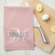 Elegant blush pink kitchen towel with a white script monogram and a gray name. Personalize with your initial and name.