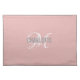 Elegant blush pink placemat with a white scripted monogram and gray name. Personalize initial and name.