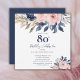 Elegant Blush Pink Navy Blue Floral 80th Birthday