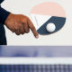 Minimalist and modern design representing blush pink, white and navy blue color block.