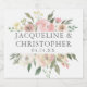 Elegant custom floral spring wedding party sparkling wine label for a bridal brunch or garden reception decorated with beautiful pink and peach peony flowers and chic sage green botanical leaves. Personalize with the couple's names and wedding date in elegant grey script.