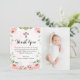 Elegant Blush Pink Rose Floral Baptism Photo Thank You Card