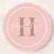 Elegant Blush Pink Round Monogram Script Coaster