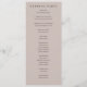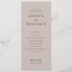 This wedding program features a minimalist and elegant design with a soft blush pink background, creating a warm and inviting atmosphere. The layout is vertically oriented, emphasizing clean lines and ample negative space to highlight the centered text. Serif fonts are used throughout, adding a touch of formality and tradition, while customizable placeholders allow for personalization with names, dates, and locations. Perfect for couples seeking a classic yet sophisticated look, this design focuses on typography to convey a mood of anticipation and celebration.