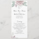 A long slim rack wedding ceremony order of service template. This design features a minimalist, simple, elegant blush pink floral design with a botanical, boho chic, classic order of service