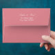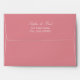 The back top flap of this wedding envelope features the names of the couple getting married and the return address, in stylish white text. Please personalize the names of the couple and the correspondence return address, using the online personalization template before ordering. A lovely envelope in which to send out wedding stationery to guests.