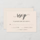 These modern wedding RSVP cards feature a blush pink background and trendy black typography.